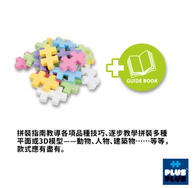 Plus-Plus——一種統一雙加號型的積木,特殊拼插方式可作多角度調整, 砌出多種形狀, 甚至關節位都可以移動孩子及父母都可以一起運用想像力及創意去砌出無限可能的2D及3D物件, 從中一起享受樂趣及滿足感。